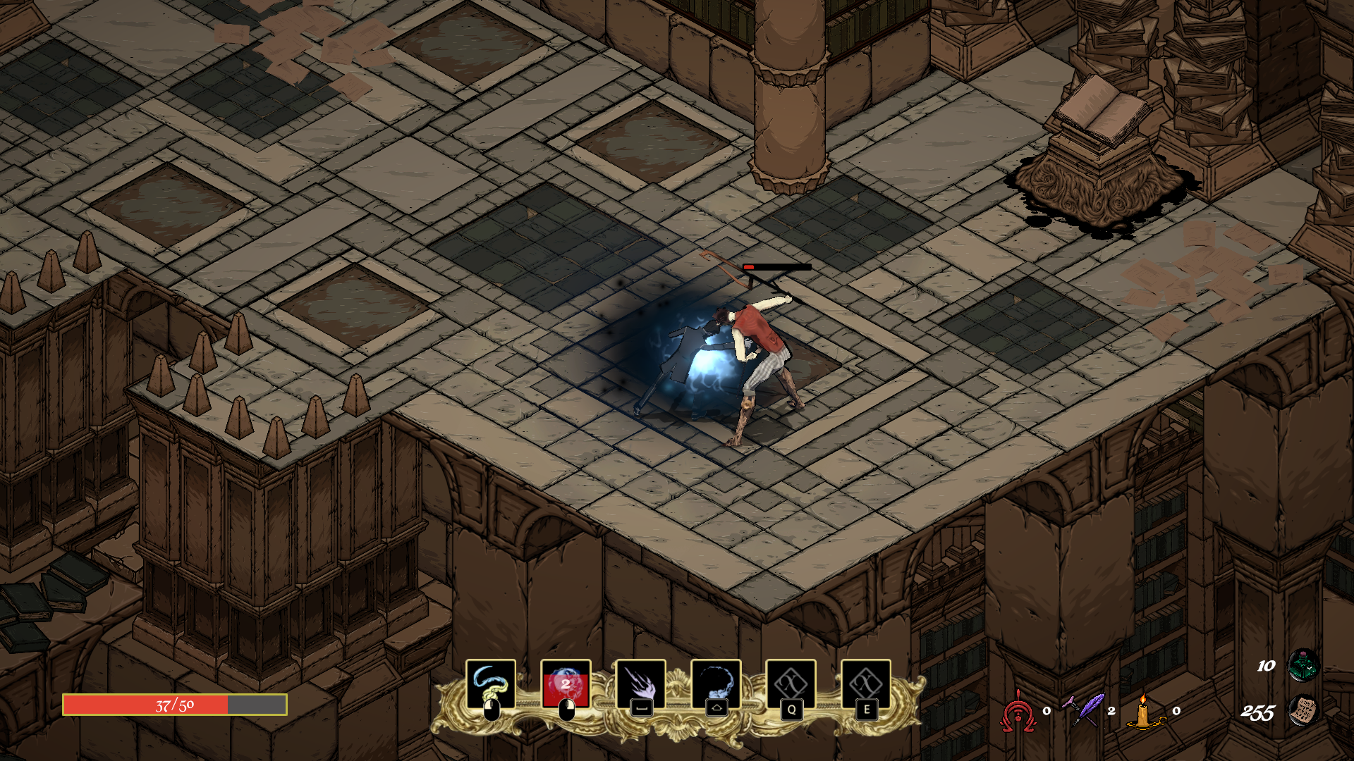 Enter the mystical Aris Archives as Clyde Colegrave, a magic-obsessed cult leader struggling with a mysterious disease. Search for the cure in the labyrinth of the forsaken library, constrained by the cane and the sickness but empowered by Ink Magic.